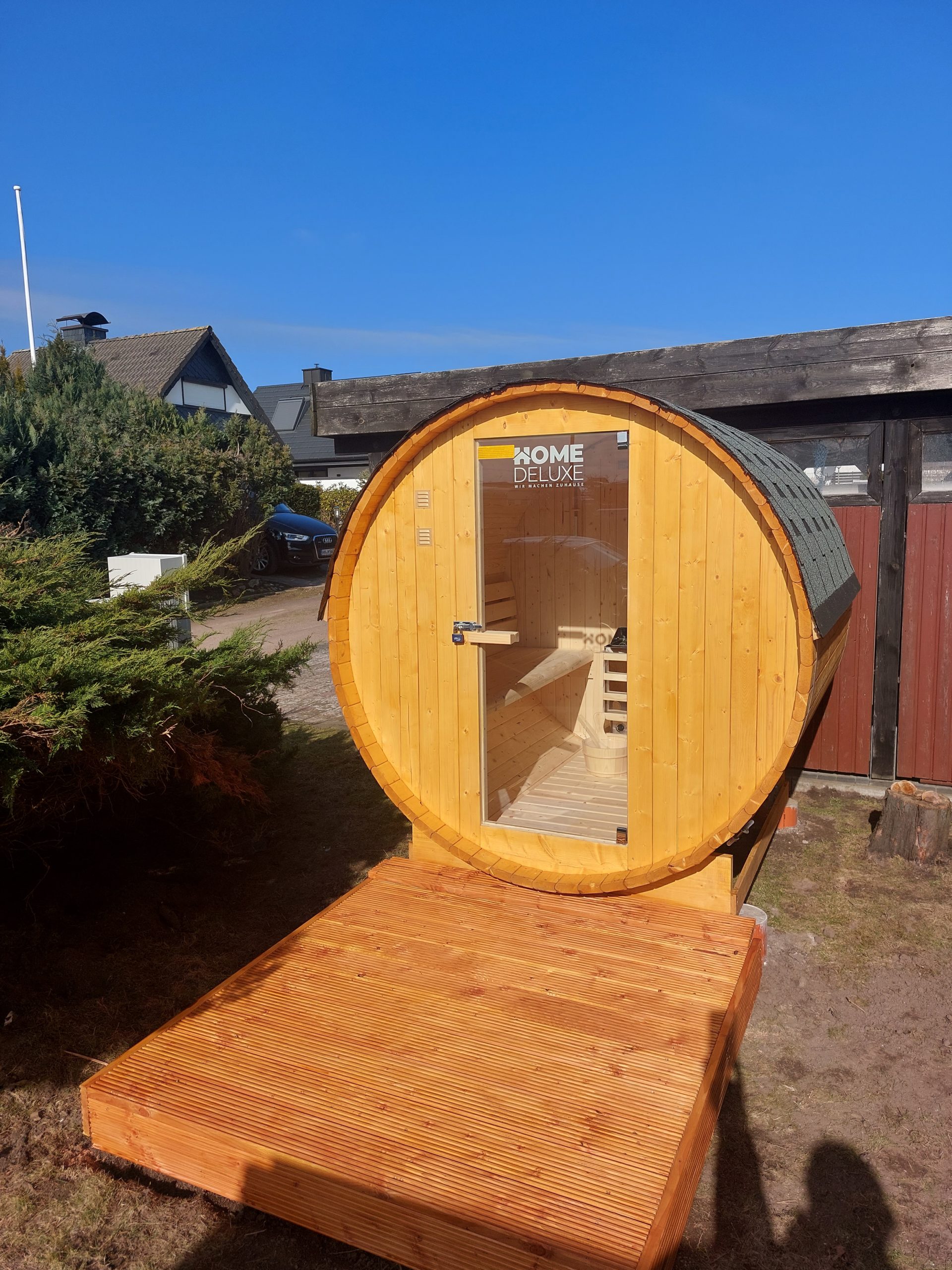Im hinteren Bereich des Grundstücks ist auch noch Gartenfläche vorhanden, dort befindet sich die Sauna mit Elektrobetrieb, und der Parkplatz.