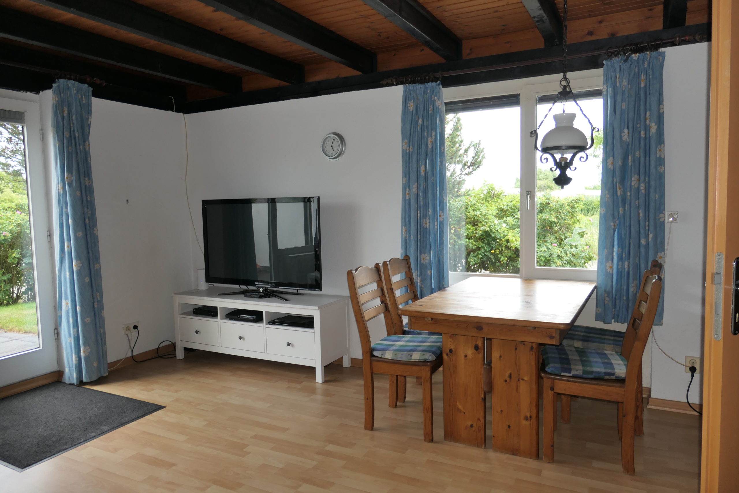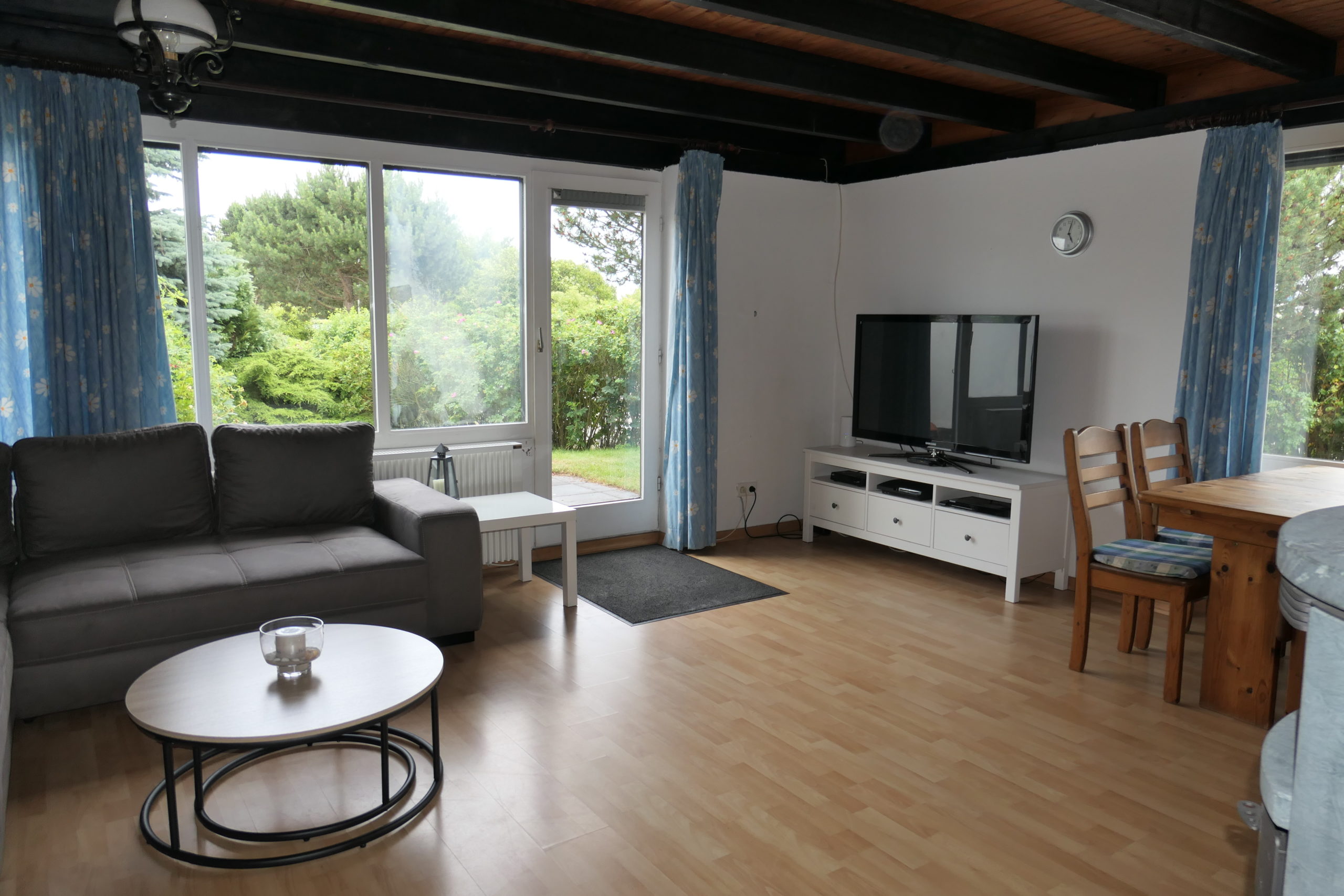 Das Ferienhaus Sütel 24 mit Terrasse bietet Platz bis 6/7 Personen + Kleinkind. Kaminofen # Backofen # Geschirrspüler # Mikrowelle # Waschmaschine # Gartensauna # eingezäuntes Grundstück #  50 m vom Badestrand # Hundehaltung (1-2) erlaubt  # WLAN.